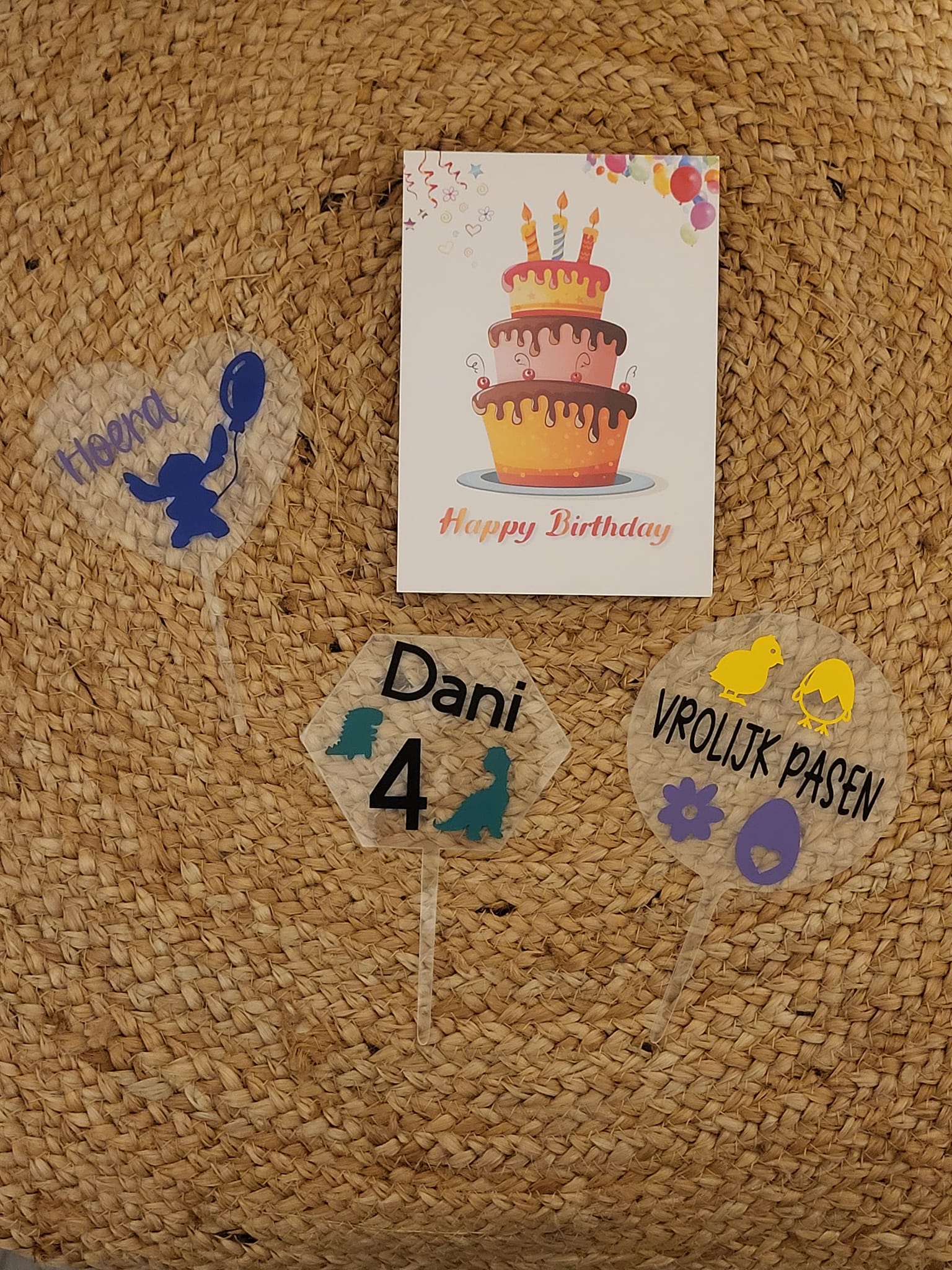 Deze ontzettend leuke taarttoppers! Uiteraard met opdruk naar keuze